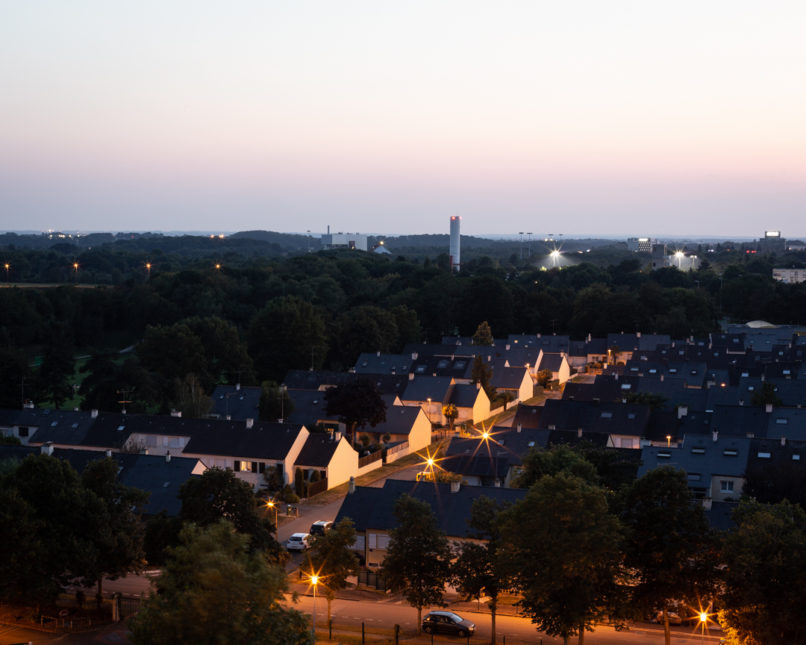 Dès les années 1970, s’est instaurée une réflexion stratégique destinée à développer une vision globale pour le devenir de la métropole rennaise. Il s’agit alors d’une première approche du concept « Ville-Archipel » basé sur une alternance ville-campagne et sur l’importance des ceintures vertes qui englobent les aires urbaines. En effet, cette organisation territoriale laisse une large place aux espaces naturels et agricoles entre les bourgs et les villes. Peu de temps avant, en 1967, commencent les travaux de construction de la rocade de Rennes traçant ainsi les contours de la « ville-centre » de la métropole. Cette voie forme aujourd’hui un anneau de 31 km. Si la rocade impose physiquement les bordures de la ville, le paysage urbain contemporain forme un ensemble hétéroclite d’espaces aussi différents que des parcs, des industries, des habitations, des centres commerciaux, des champs à ses abords. L’urbain, le péri-urbain et le rural s’interpénètrent dans ces lieux transitionnels que sont ces marges.