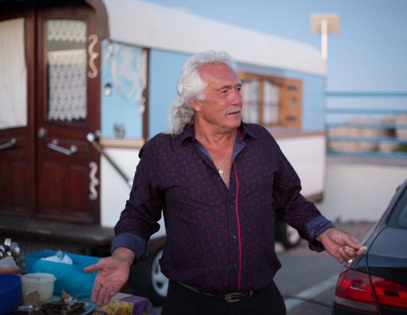 Hollandais, Yann est un ancien pêcheur des mers du Nord et des mers du Sud. Depuis 38 ans, il parcourt l’Europe à bord de la roulotte qu’il a construite lui-même. Il rejoint chaque année ses amis gitans aux Saintes Maries de la Mer. C’est pour lui un rendez-vous incontournable.